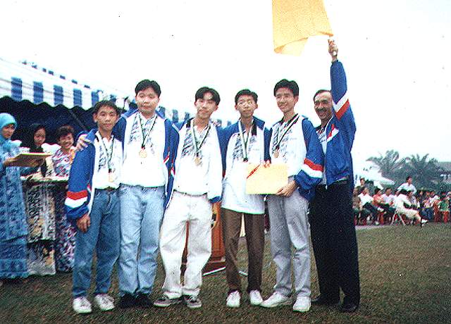 Under-18 Penang State Team at the prize giving ceremony of the final 1997 MSSM, Selangor.